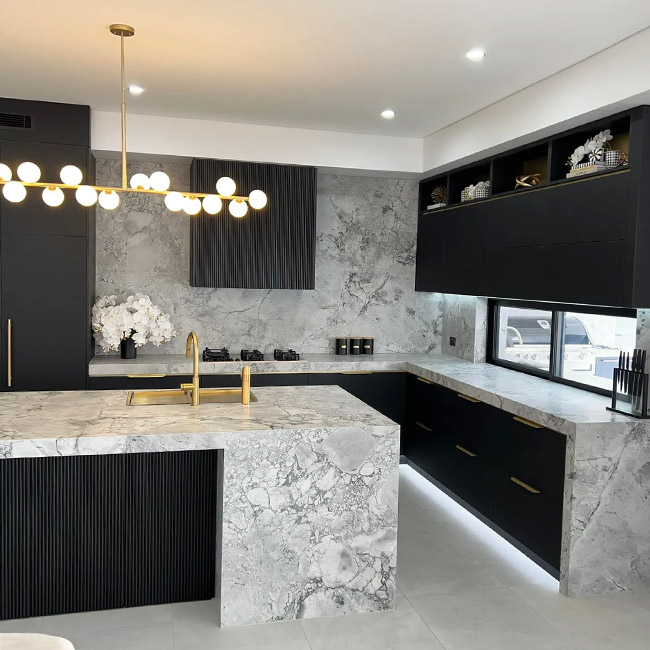 - Stone or laminate benchtops